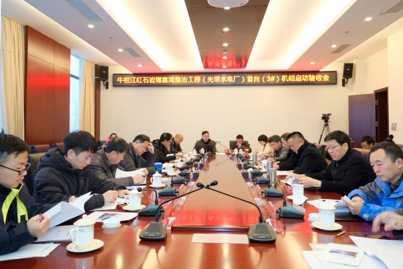 驗收委員會成員、特邀專家和堰塞湖公司、各參建單位、廠家代表參加整治工程電站首臺機組啟動驗收會。